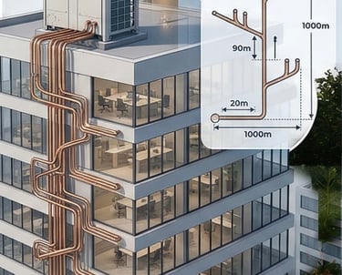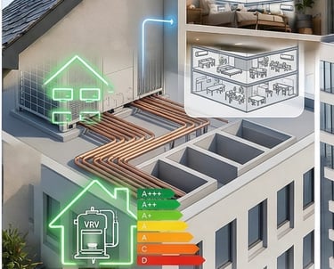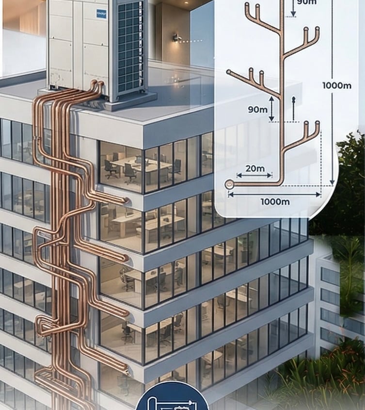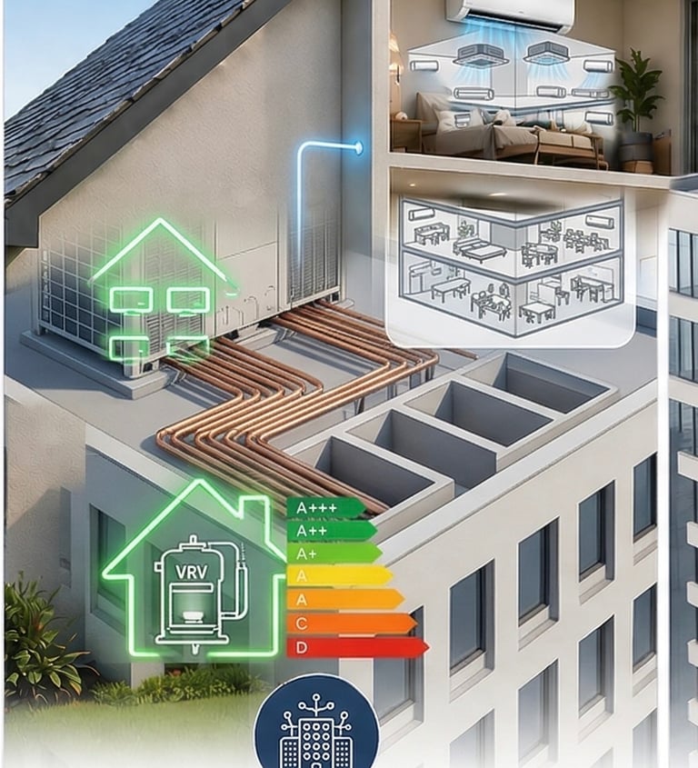 VRV klima altyapı sistemleri, otel, AVM, hastane ve büyük işletmeler gibi geniş alanlar için üstün performans sunar. Aynı anda farklı alanların farklı ihtiyaçlarına uyum sağlayarak her noktada ideal sıcaklık kontrolü sağlar. Esnek yapısı sayesinde projeye özel çözümler sunar.