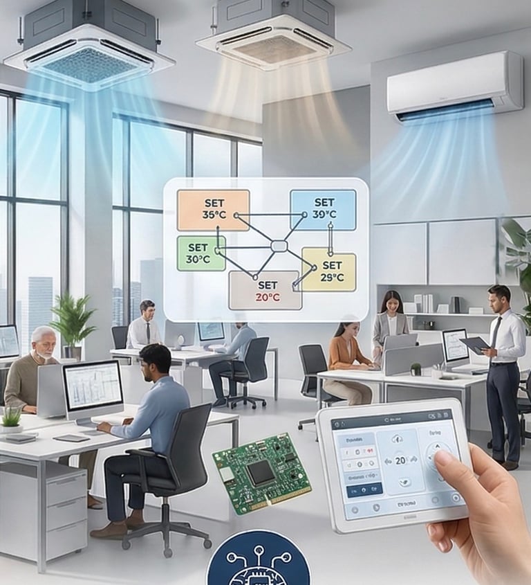 Tüm sistemi tek merkezden kontrol edebilme özelliği ile kullanım kolaylığı sağlar. Her alanın sıcaklığı ayrı ayrı yönetilebilirken, sistem genelinde kusursuz bir denge oluşturulur. Sessiz çalışma, stabil performans ve kesintisiz konfor ile profesyonel mekanlar için ideal çözümdür.